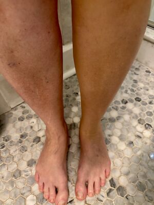 A perfect touch of color! Blends beautifully and does not look fake or like a camouflaging layer at all. However, this is REALLY a recommendation for an even and beautiful coverage! My before and after photos clearly show it, my right leg with coverage, my left leg still pale! The final color is beautifully absorbed and gives a stunning even effect. Perfect for my summer dresses.