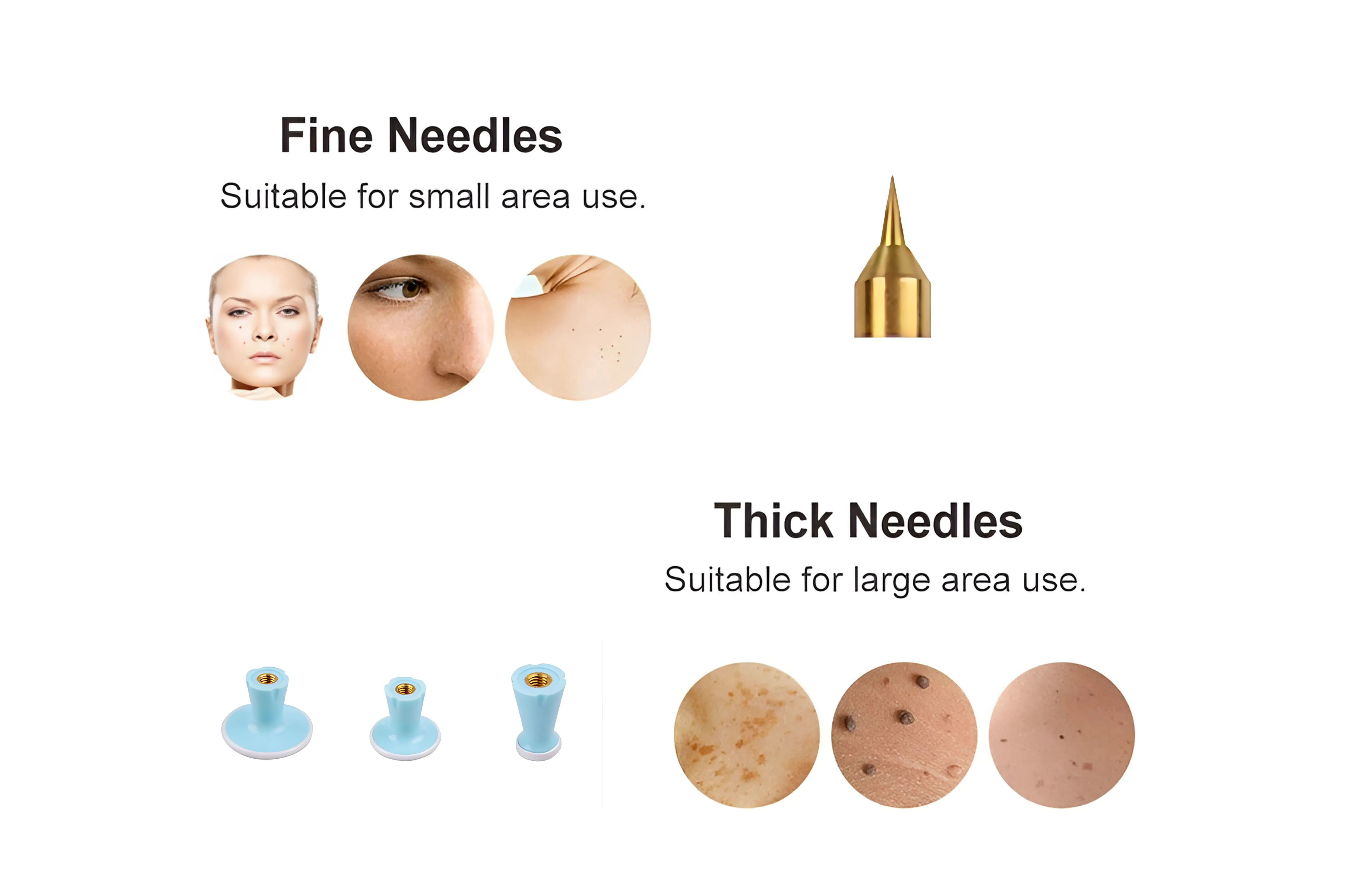 The set contains multiple attachments and needles for various treatments, such as skin tightening and the removal of small imperfections.